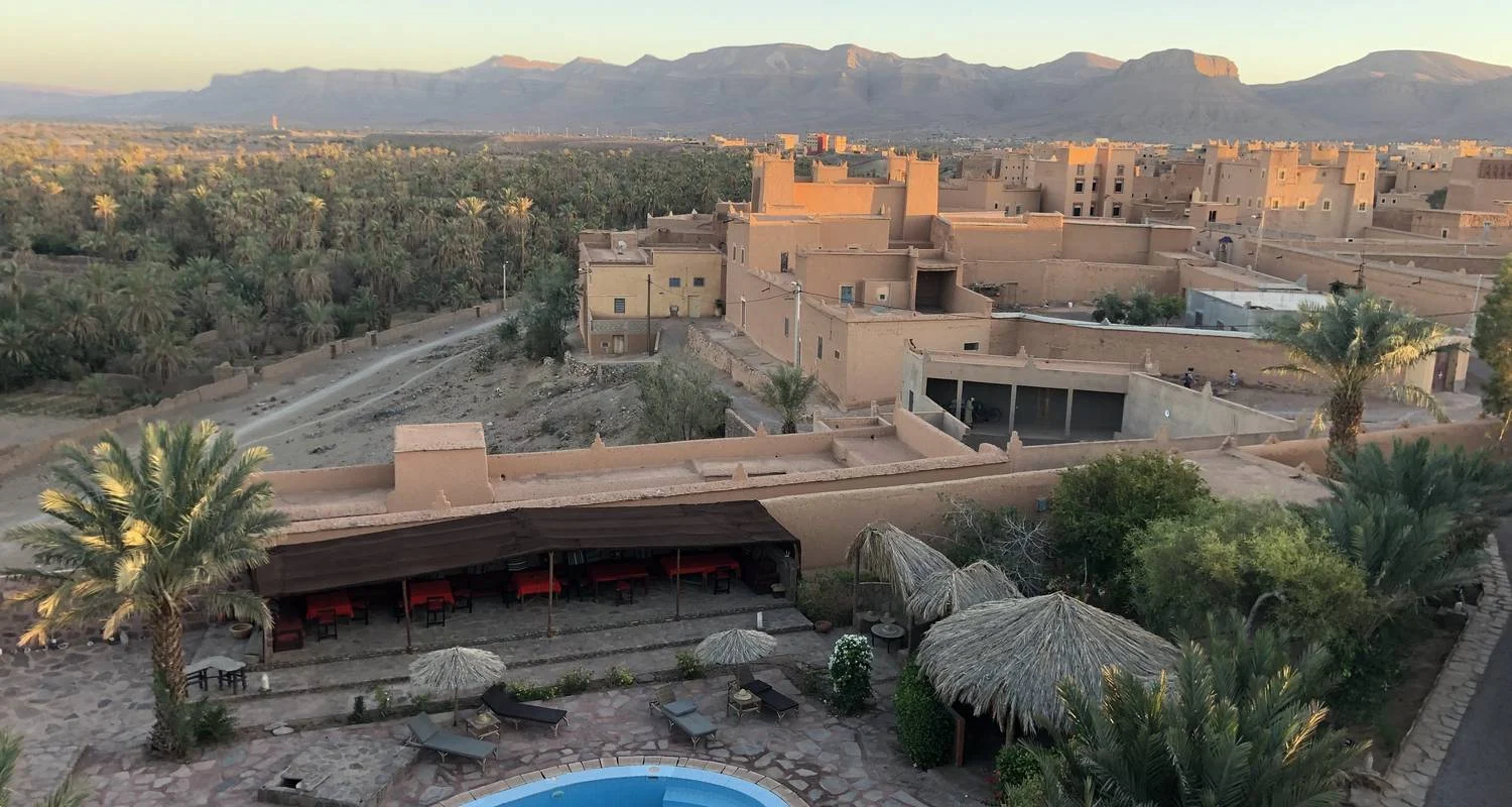 After enjoying breakfast at your riad in Fes, we will set out on an incredible desert experience. Our journey will take us south towards Merzouga, where the desert awaits. Along the way, we’ll make a brief stop in the pleasant city of Ifrane, allowing you to take a moment to breathe and soak in the beautiful surroundings. Continuing our drive, we will traverse the Middle Atlas Mountain Range and pause at a cedar woodland. Here, you will have the chance to observe Barbary apes in their native environment. Following this, we will stop for a satisfying lunch at an eatery along the route, ensuring you have the energy to proceed. As we continue, we will enter the captivating Ziz Valley, renowned for its plentiful palm tree oasis. You will be able to witness the beauty of this verdant landscape before we make our way towards the desert. In the afternoon, we will reach the desert, and your authentic camel caravan experience will begin. Traverse the mesmerizing sand crests of Erg Chebbi atop your reliable dromedary. During the trek, we will pause to witness a breathtaking sunset from a high dune, creating a truly enchanting moment. Continuing our camel trekking experience, we will arrive at a luxury camp. Upon arrival, you will be escorted to your own private tent, allowing you to relax and refresh. Once evening arrives, a delicious meal will be served, offering a taste of regional cooking. Gather around a warm open fire beneath the star-filled sky, where our camp staff will entertain you with energetic drumming and mesmerizing Berber melodies. You will even have the chance to try playing the drums yourself, adding an extra layer of enjoyment to the evening’s celebration. Driving distance: Approximately 500 km Driving time: Approximately 7 hr 30 min