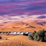 Get ready for a wonderful day as we travel from Fes to the peaceful Merzouga Desert. After breakfast, we set off on an authentic desert experience. Our first stop is the charming town of Ifrane, where we take a moment to breathe in the serene atmosphere and admire the beauty of this scenic location. As we continue our drive, we traverse the stunning Middle Atlas Mountains, offering spectacular views that will leave you in awe of nature’s majesty. Next, we stop at a cedar forest tucked among the mountains. Here, you will have the unique chance to observe the playful Barbary apes in their natural environment, watching their fascinating behaviors up close. Afterward, we will enjoy a delicious lunch at a specially selected restaurant. Continuing our journey, we will drive along the enchanting Ziz Valley with its lush palm oasis. Take a moment to appreciate the harmony between nature and the desert environment. In the afternoon, we will finally arrive at the mesmerizing Merzouga Desert. Prepare yourself for an authentic camel caravan experience as you ride atop these majestic animals through the golden sand dunes of Erg Chebbi. As the sun begins to descend, we will pause atop a high dune to enjoy a truly awe-inspiring sunset, painting the desert sky with vibrant colors and casting a golden light over the majestic landscape. As twilight falls, we reach a luxurious desert camp, where you will be welcomed to your private tent. Freshen up and relax before indulging in a delicious dinner, savoring the flavors of traditional local cuisine. Gather around the warm and inviting bonfire under the star-studded sky as the camp staff entertains you with lively drumming and captivating Berber music. Feel the rhythm and join in the celebration by learning to play the drums yourself, creating a feeling of unity and joy in the heart of the desert.